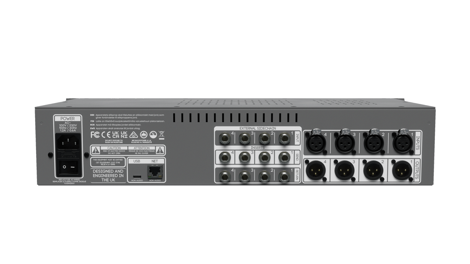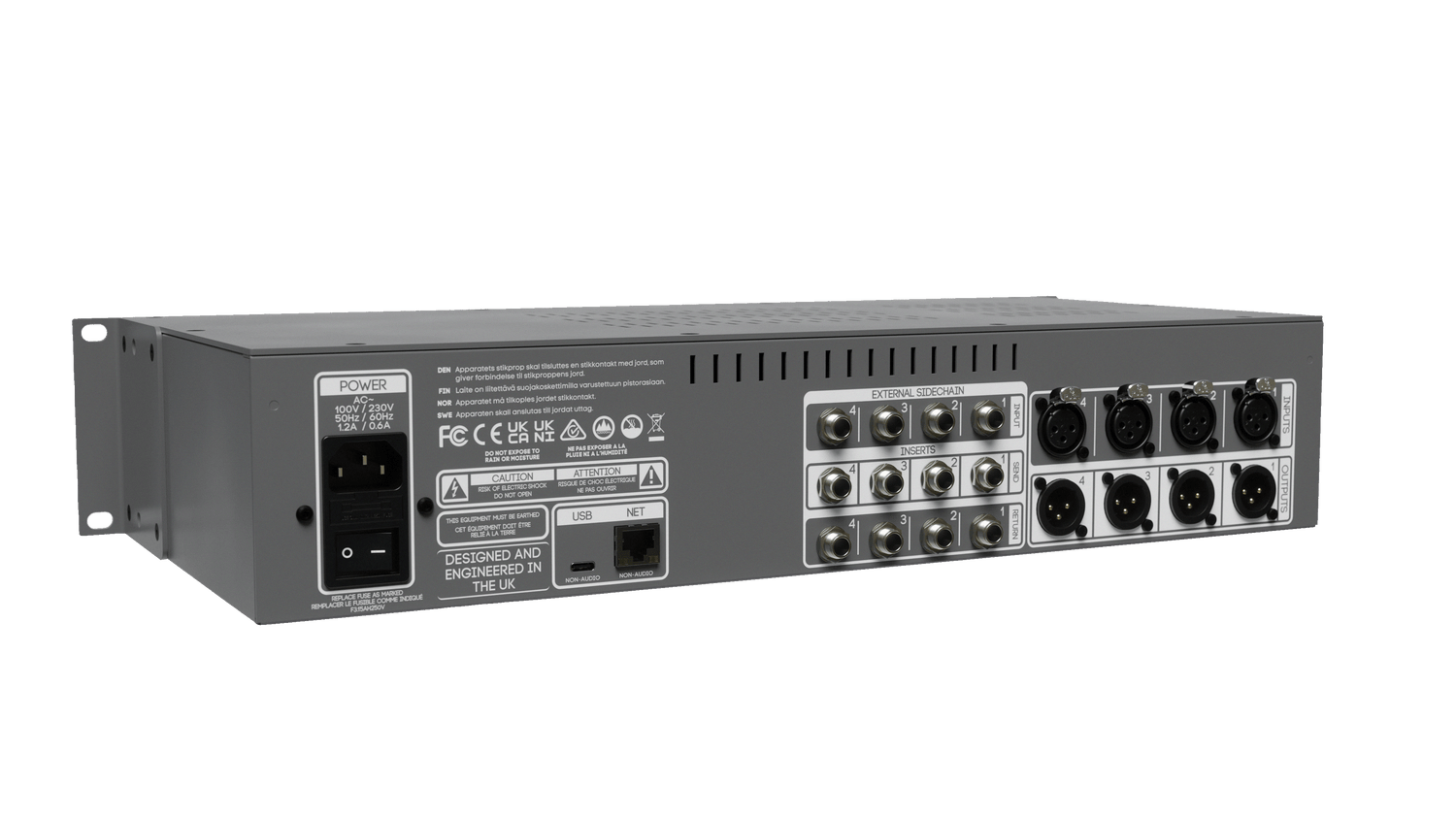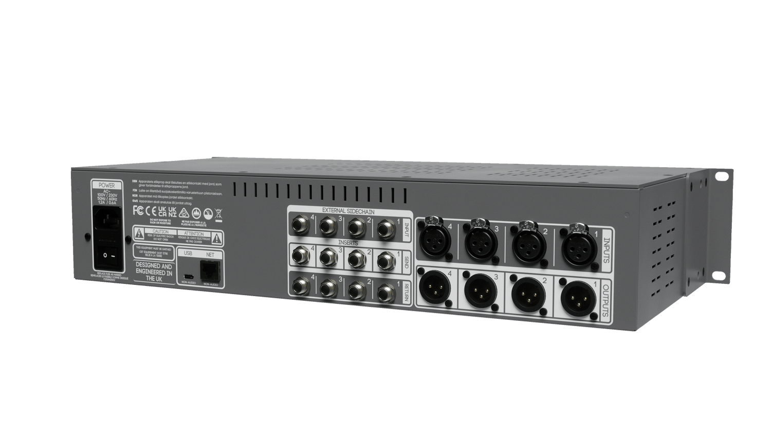 19” 2U digitally-controlled dynamics processor, 4-channel Modal PWM, mono/stereo/mid-side, dual-band, de-esser, analogue lookahead, USB/NET control, harmonic saturation