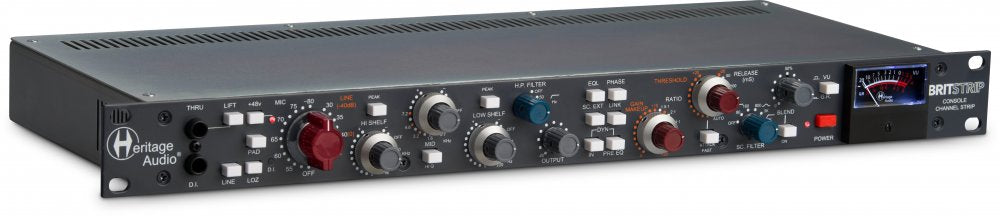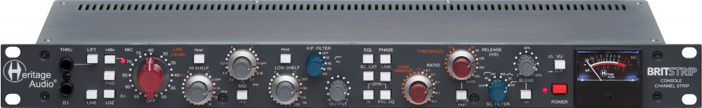 50 YEARS OF ANALOG DESIGN IN ONE RACK SPACE Introducing the Heritage Audio BritStrip - the culmination of 50 years of analog design in a single rack unit. Britstrip nails the sound of yesterday's iconic recordings for today's demanding engineers. The BritStrip combines a real-deal 73 mic preamplifier, an expanded 73 equalizer, a discrete Class-A DI and the infamous diode bridge compressor from the Heritage Audio Successor. The closest equivalent of the BritStrip would be chaining together a 73JR, 73EQJR and mono Successor.