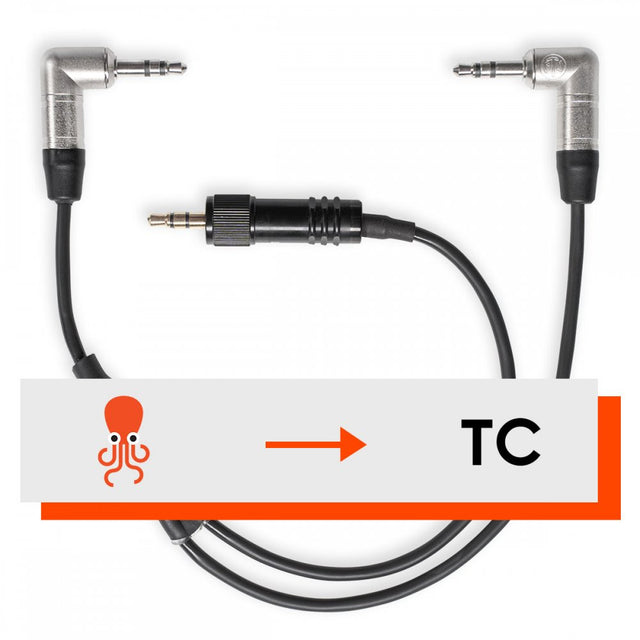 TENTACLE AND BODYPACK RECEIVER TO CAMERA Y-CABLE The external microphone is recorded on the right channel, while the audio timecode is recorded on the left channel.