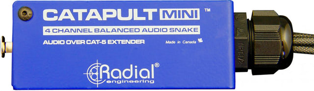 The Catapult Mini MINI TRS is a 4-channel compact audio snake that allows you to send analog audio signals over standard Cat 5 or Cat 6 shielded twisted pair cable.