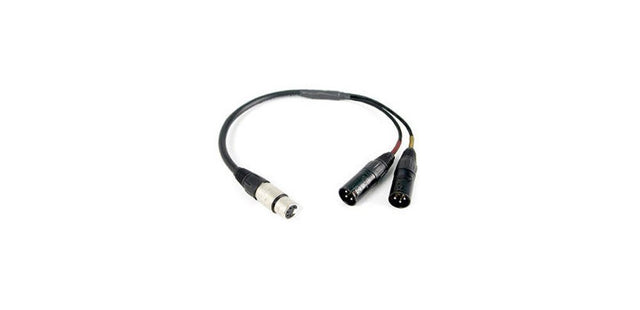 Balanced stereo breakout cable. XLR5F to (2) XLR3M. 18 in. (5 in. fan).