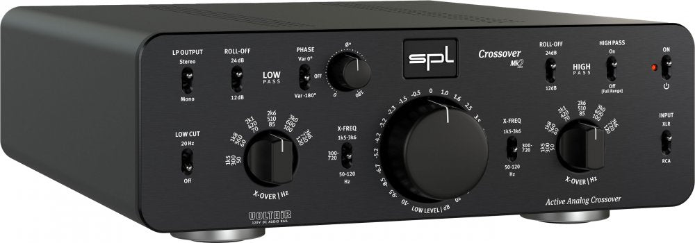 Powered by VOLTAiR Technology with a 120V DC operating voltage, the Crossover Mk2 offers unmatched headroom, dynamic range, and signal integrity. Equipped with gold-plated RCA and XLR connections, a LOW CUT filter to remove subsonic noise, and advanced PHASE control, it guarantees flawless synchronization and powerful sound performance. Its sleek black finish perfectly complements any SPL Professional Fidelity setup.