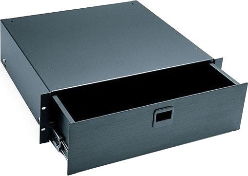 Fully enclosed with inside dimensions measuring 15 7/8" wide by 14 1/2" deep, the DC, D and TD series drawers feature spring-loaded latches and rugged, straightforward construction. Faceplates come with a black brushed and anodized or textured black powder coat finish. Drawers have a 50 lb. weight capacity.