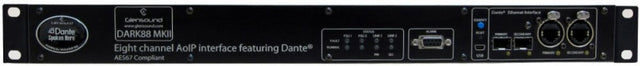The DARK88 MKII is a versatile break in/out box for sending/receiving analogue audio to/from a network utilising the Dante audio over IP (AoIP) protocol.