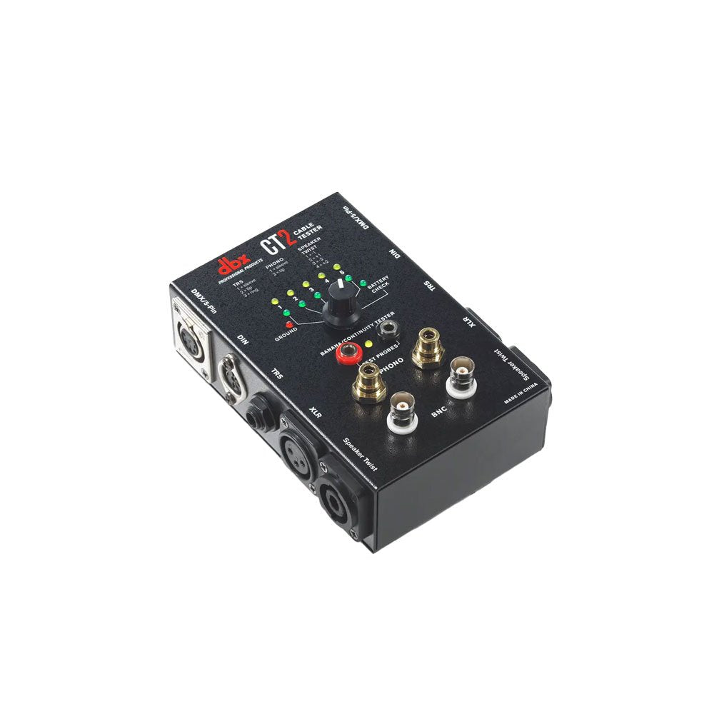 The dbx CT-2 is a rugged and versatile cable tester designed to simplify the process of troubleshooting and verifying the integrity of a wide range of audio and video cables. With support for multiple connector types-including XLR, TRS, TS, RCA, BNC, MIDI (DIN), DMX, Speaker Twist, and Banana-the CT-2 allows for flexible testing even when cable ends have different connectors.