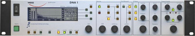 DNA1 - a milestone in the Gambit Series equipment developments at Weiss Engineering. Three state of the art algorithms are packed into the DNA1. The de-noising section has been developed in cooperation with the Pure Notes Company (UK), the de-crackling and de-clicking algorithms are the Weiss R&D lab's design and finally the K-Stereo Ambience Processor we licensed from Mr. Bob Katz (USA). All functions can be used concurrently. The DNA1 can be switched to M/S mode which can be useful e.g. for de-noising the M channel only while applying less de-noising on the S channel to leave the ambience intact. Several music tracks for listening before/after the DNA1 are available for download at the bottom of this product page.