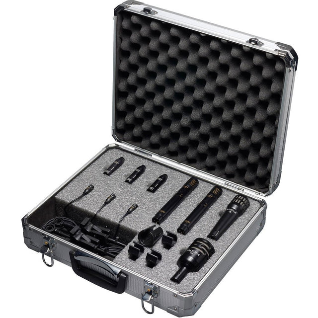 LIVE SOUND OR RECORDING The DP7MICRO drum pack contains seven microphones to mic a standard 5-piece drum kit: kick, snare, rack toms, floor tom and stereo overheads. Perfect for stage or studio, this combination of dynamic mics featuring exclusive Audix VLMTM capsule technology and the MicroD condenser mics offer accurate sound reproduction in very high SPL applications. Mic clips, mounts, and rugged aluminum carrying case are included. · Professional set of 7 drum mics for stage or studio · ADX51 condensers for overheads add spacial dimension · Easy to set up and position • Mics work in tandem to replicate each drum accurately and independently