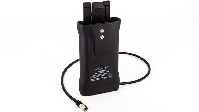 Single battery holder/holster with DTAP output connector and HRS4 lead cable