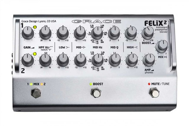 FELiX is our new, studio quality 2 channel blending acoustic instrument and mic preamp, designed for working musicians, engineers, sound companies or venues looking for the highest quality solution for amplifying stringed instruments. FELiX is built into a roadworthy (beer-resistant) floor unit chassis of anodized aluminum and steel, portable enough to leave the rack at home but bring studio quality to the stage. With the same stunning audio performance and legendary reliability as Grace Design's pro audio range, FELiX brings open, musical and nuanced preamplification to any performance situation.