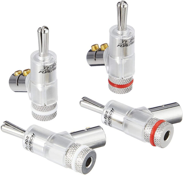 The FP-202 is available in either Gold or Rhodium, and is the Banana plug of choice for those wanting the ease and versatility of Banana plugs with Furutechs peerless build quality. No soldering is necessary, as there are two set screws that clamp onto the cable.