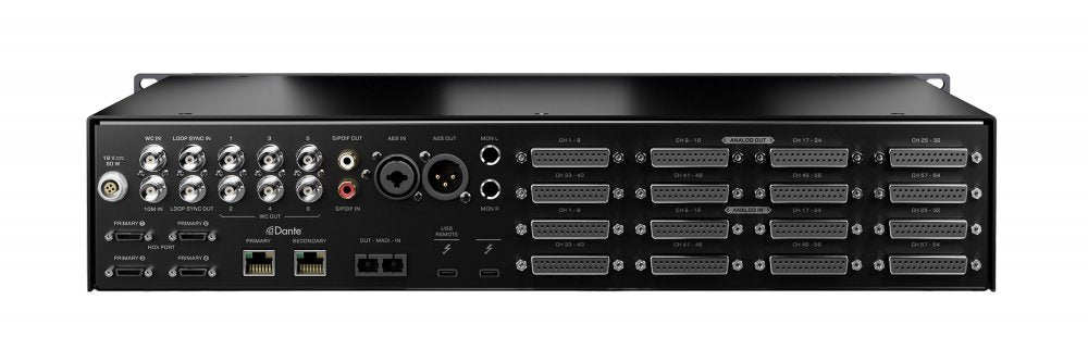 World's First Antelope Audio's first Dante interface is also the world's first 64-channel AD/DA converter. Featuring all industry-standard analog and digital I/O within a 2U rack space, including 64 channels of analog in and 64 channels of analog out, Thunderbolt™ 3, DANTE, AES/EBU, HDX and MADI, the Galaxy 64 Synergy Core is equipped to handle all audio going in and out of your production facility or live venue.