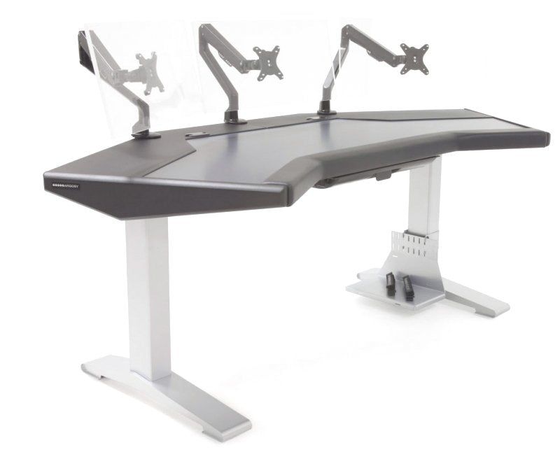With the "Ultimate-XM" package you get three Argosy D8 monitor arms, an adjustable CPU mount to securely attach your computer to the workstation, and a handy accessory drawer for convenient under-desk storage. (Plastic monitor displays not included)