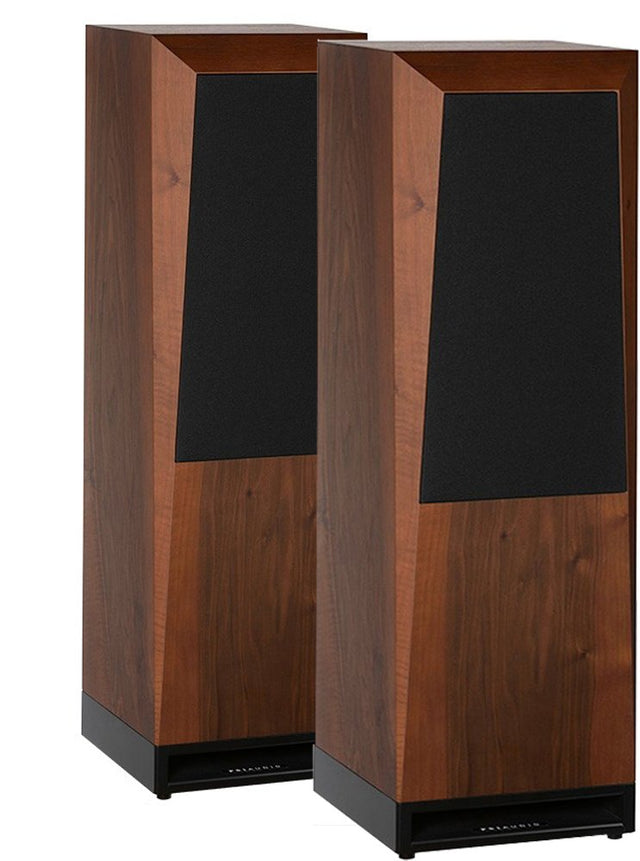 Three way active audiophile speakers with 300W built-in amplifiers, 10 inch woofers, completely analogue circuitry, professional level sound precision and walnut wood finish