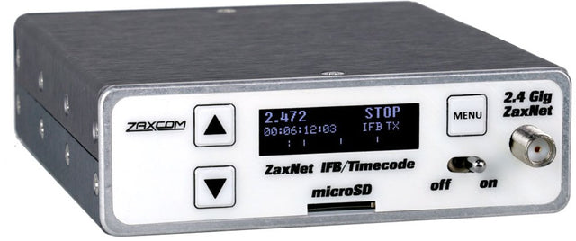 The IFB300 is a ZaxNet transmitter that sends high-quality, fully encrypted IFB audio, timecode, and remote control commands to Zaxcom Digital Recording Wireless transmitters and ERX receivers. The signals are carried on a single RF channel ocer 2.4 GHz which can be used license-free in almost any country.