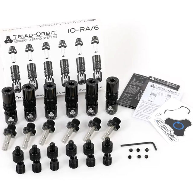 iO-RA is now available in Six Packs. With its reduced packaging and cost, Triad-Orbit is giving studios, content creators and production companies a more cost-effective way to deploy multiples of the lighter and already affordable iO-RA, allowing you to quickly interchange booms and mics across your entire inventory of existing stands.