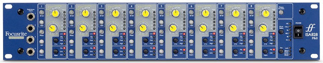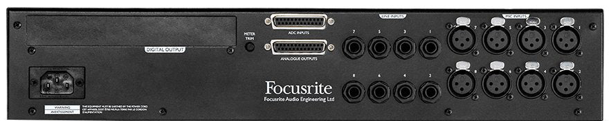 Each channel has the option of mic or line inputs,while inputs 1-4 also feature instrument inputs on the front panel. Each mic pre has variable input impedance, to provide a range of subtly different sonic options when using microphones, including an 'ISA 110' setting, which replicates the impedance of the original Focusrite mic pre.