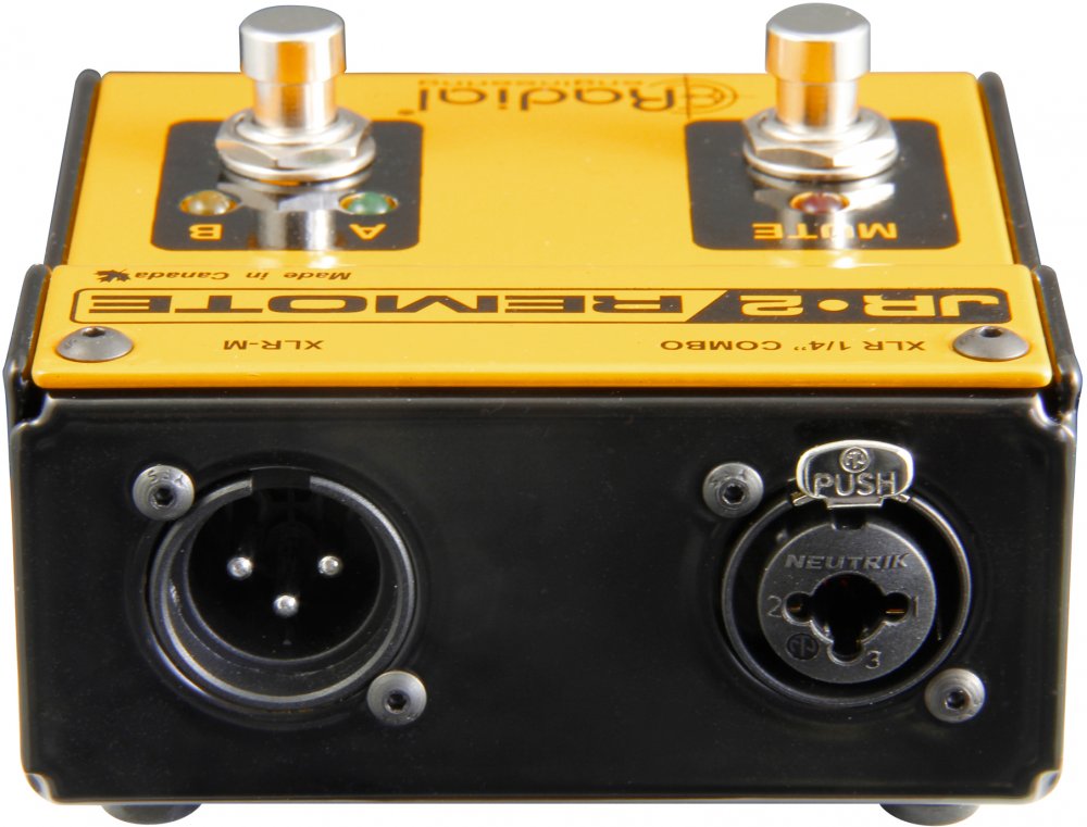 The JR2 is a dual function remote footswitch that lets you switch or mute outputs, depending on the Radial device that is connected.