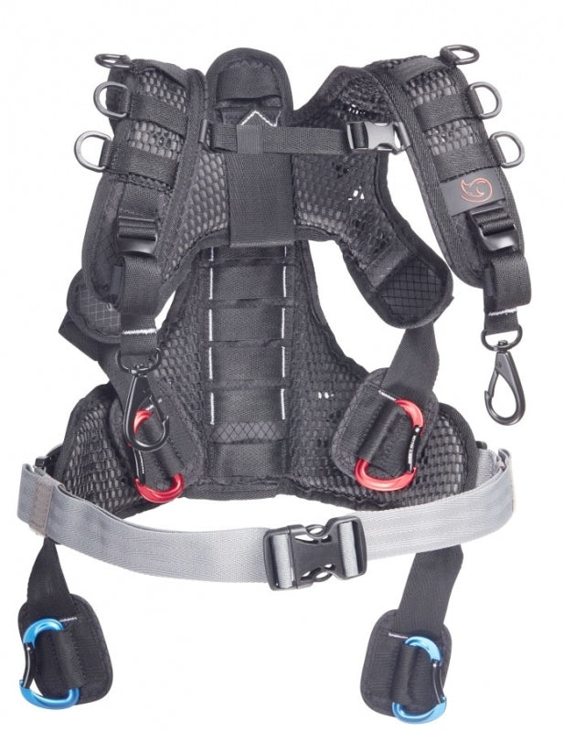 The Butterfly element (over and under shoulder straps) can be easily adjusted on the main exoskeleton portion of the harness making the harness perfect for various body types and sizes. Smartly integrated, along with the rest of K-Tek's Stingray products, there are plenty of D-Rings, strap mounts and Molle straps offering a multitude of attachment points.