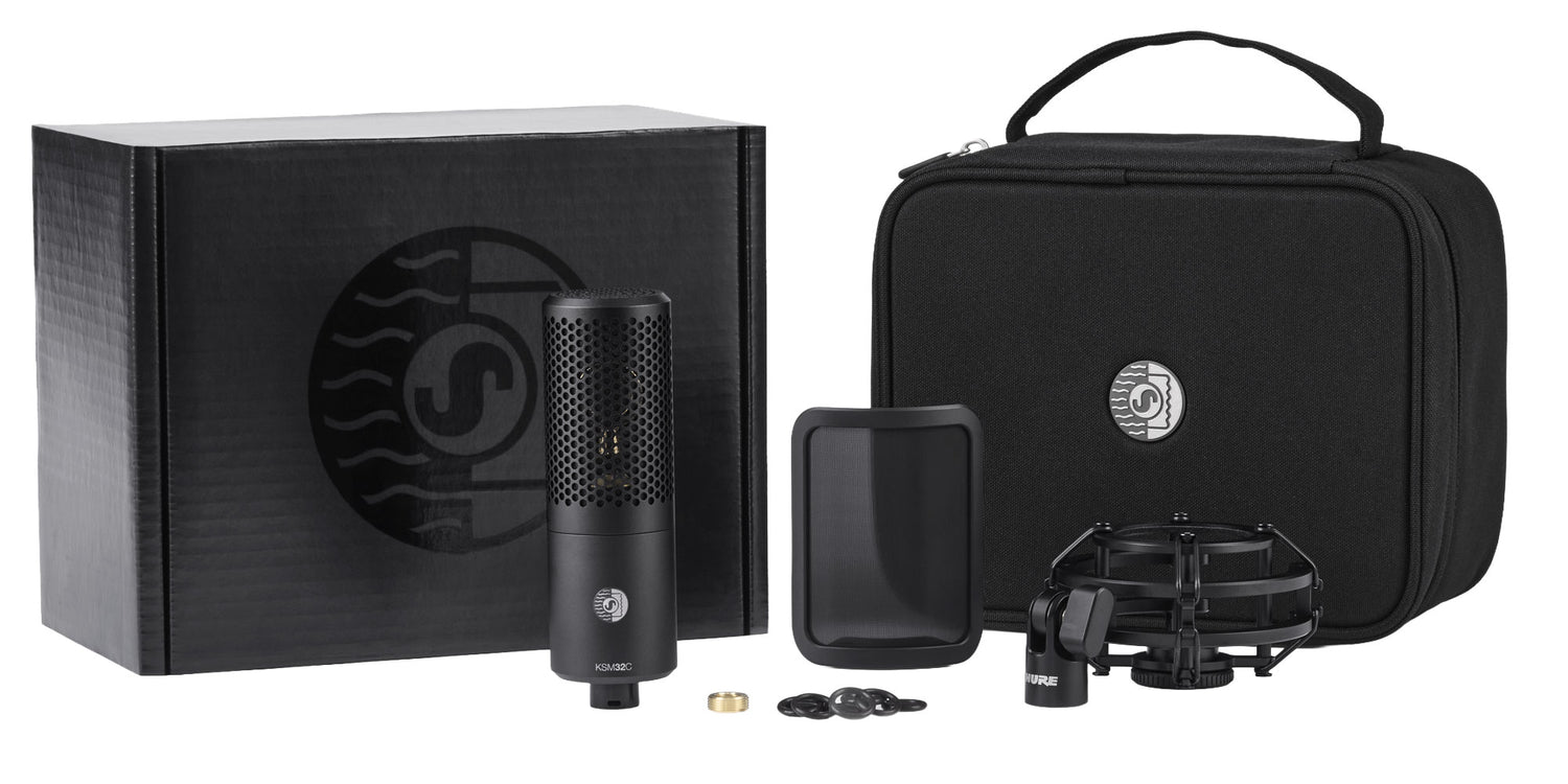 This version of the KSM32C includes a shock mount and magnetic pop filter to reduce unwanted noise from vibrations and plosives. Also packaged with a carrying case and threaded adapter, it provides the essentials for a controlled, reliable studio setup. Its uniform cardioid pattern makes mic placement more predictable by focusing on the source while minimizing bleed and room reflections. The lightweight aluminum housing and clean aesthetic make it a practical and durable addition to any recording space.