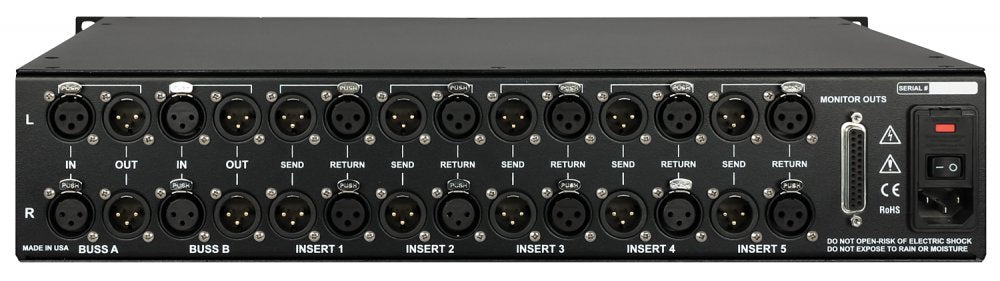 Four Monitor Channels - Each of the two busses can be monitored before or after the insert loop, allowing you to hear the results of your inserted processing on either buss instantly. Intelligently routing these four monitor channels in your studio will open up all kinds of uses that minimize patching work and maximize your ability to make fast, reliable comparisons.