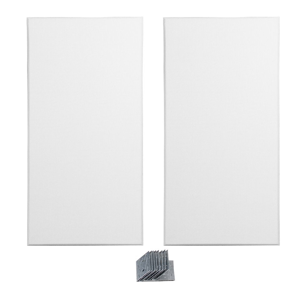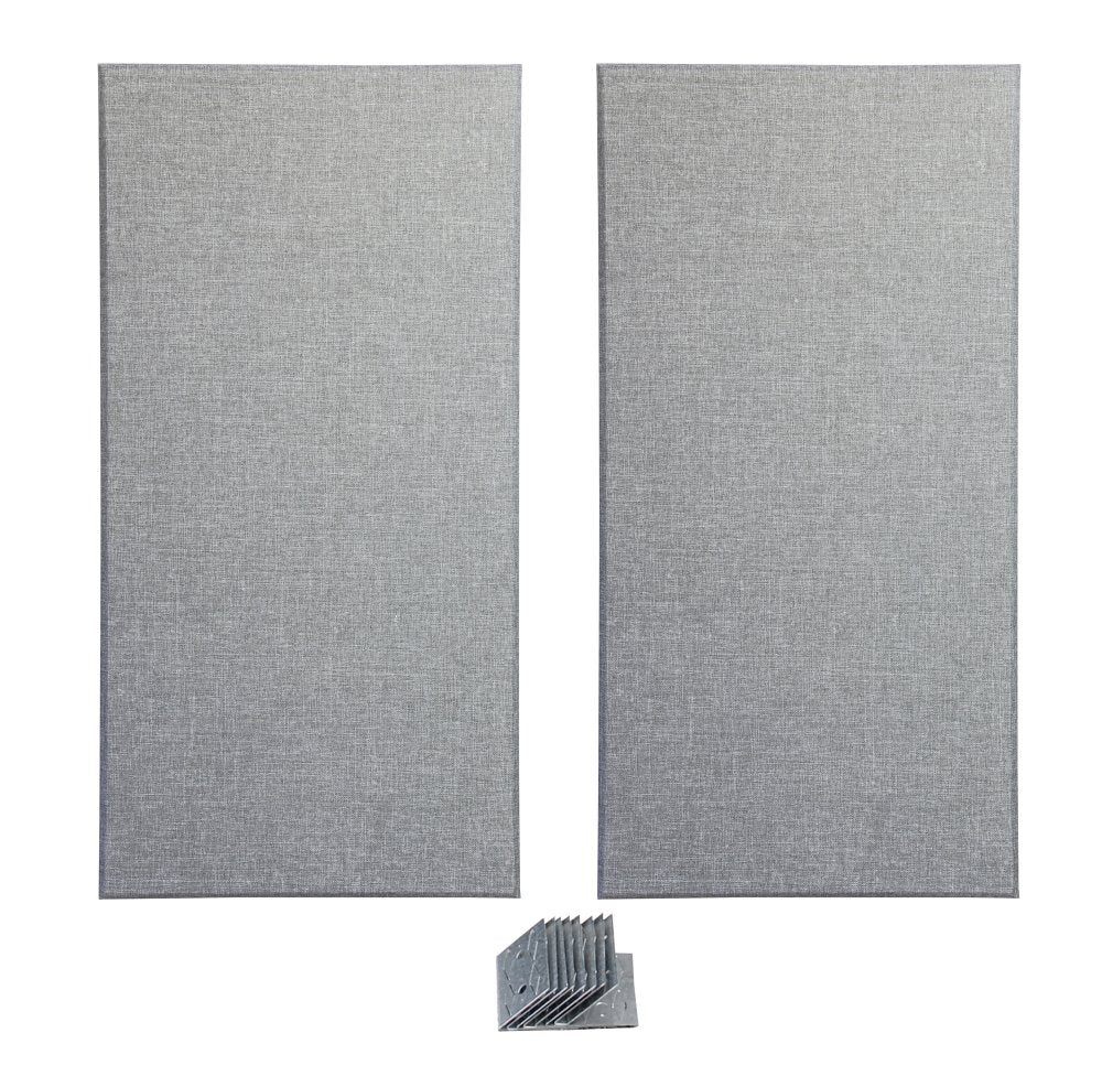 Each panel is constructed from high-density 6lb glass wool with resin hardened edges and fully encapsulated with micromesh. The panel is hand wrapped with an acoustically transparent polyester fabric to create sharp, architecturally pleasing lines. Installation is just about as easy as hanging a picture! Once installed, the substantial surface area of the panel combined with the 17" deep (43cm) air cavity created in behind delivers excellent absorption throughout the audio listening range and extends well down into the low bass region. This helps reduce troublesome room modes and hot spots by attenuating standing waves making it easier to record and produce music with greater confidence.