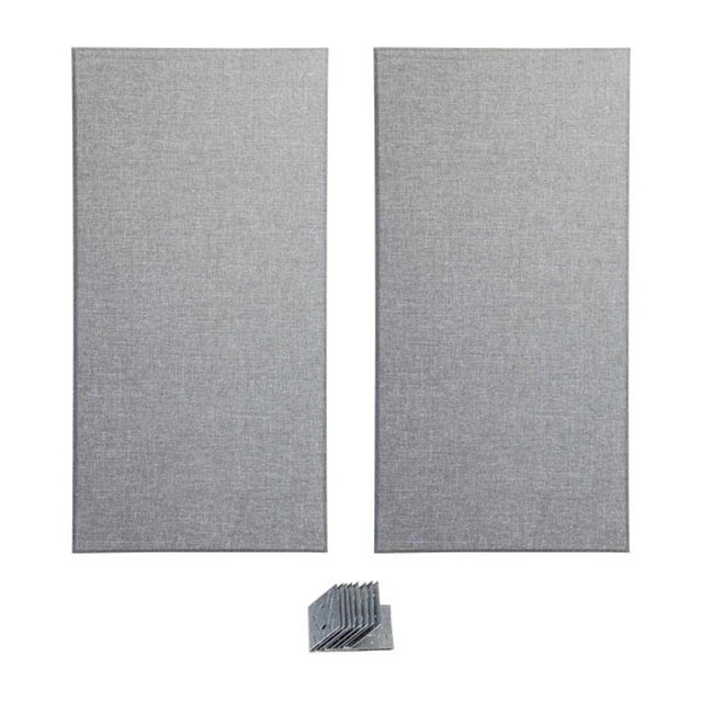 Acoustic bass trap kit for improved low-frequency control. Includes panels designed to enhance sound clarity, featuring a modern design in grey.
