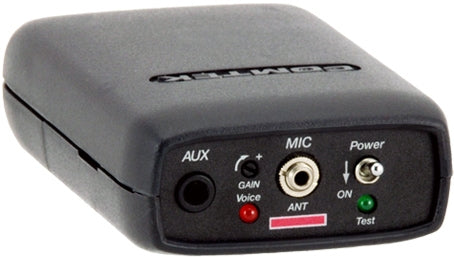 The transmitter's microcontroller automatically sets the modulation for companding or non-companding audio processing when the corresponding channels are selected. The channel selection also sets either narrow-band operation on channels 1-40 (5 kHz deviation) or high-fidelity, wide-band operation on channels 41-60 (10 kHz deviation). The optional microphone mute switch turns off the microphone without turning off the aux input.