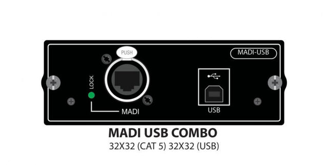 The Soundcraft MADI-USB Combo card offers digital audio connection between an Si series console and Apple Mac or PC with a USB port as well as any of the Soundcraft range of Stageboxes via Soundcraft's proprietary Cat 5 MADI connection.