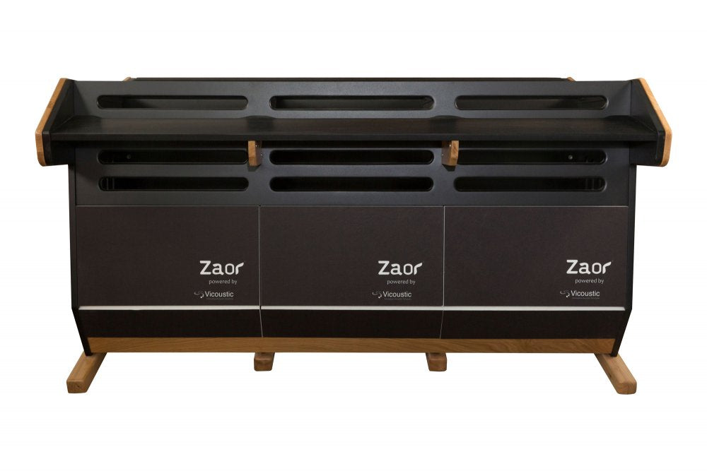 The Maestro user is putting final touches to the sound of mixes, masters, edits so listening is at the heart: an extra low profile allows for the desk to be the least in the way of the sound reproduction, the back has VMT absorption panels by Vicoustic to minimise chaotic reflections and resonances and the work surface is made from AERstop, an acoustic material that minimises reflections and doubles as mouse pad. A small armrest warrants smooth typing and low wrist stress. The complete desk is more air than structure, so that sound is not boxed in, air can flow freely and keep working temperatures at optimal levels. A dual cable path (audio/power) separates signals from power leads and thus minimises hum and other inductive noise. Chrome bars with pre-fitted Velcro strips allow for fast and clean (re-) cabling. 36 rack units - all the essential tools within easy reach and on the minimal footprint allow for a perfect workflow. Extra 18 RU can be installed below the desk, where visual contact is less important. The bottom can also be open to allow to stretch legs once in a while. Behind the rack units, a flat plane, lowered as to not impede sound travel, can carry screen(s) just at eye level, near fields for cross check sitting on optional isolators to avoid sound transmission through the desk, which would lead to smear in the lower frequencies. Nothing superfluous, nothing amiss! Ergonomics and acoustics integrated