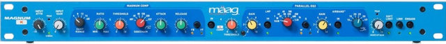 The Maag Audio MAGNUM-K is a single channel Compressor built to complement the audio engineer's craft in a very big and impactful way. The MAGNUM-K is comprised of two compressor sections (MAGNUM COMP and K COMP), a very musical Parallel EQ (with LMF and AIR BAND), and a Soft Limit (soft limiter).