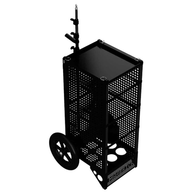 The Maverick is a compact utility/follow cart that features generous storage space (easily customised), a recessed work area at the top, a handle that doubles as an antenna riser and 12 inch rear wheels.