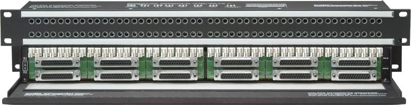 This 2x48 audio patchbay is wired to DB25 connectors. The Quick-Switch normalling allows you to set the individual normals on a per jack pair basis. This enables you to full-normal (FN), half-normal (HN) or non-normal (NN) by sliding the switches into the appropriate position. You also have grounding options: isolated, bussed, or grounds vertically strapped (GVS).