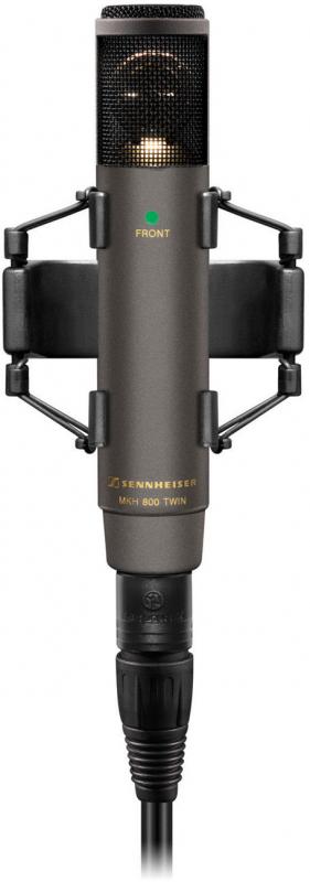 The MKH 800 TWIN is a universal studio condenser microphone of exceptional quality. It includes a dual capsule consisting of two symmetrical push-pull transducers with high linearity. This is a "side fire" microphone with the two cardioid pick-up patterns of the transducer aligned back-to-back across the axis of the microphone. The signals of both transducers are not combined in the microphone in order to generate differing pick-up patterns but are available separately as two channels at the microphone output. This allows the pick-up patterns of the MKH 800 TWIN to be remotely adjusted. The signals can be combined in any desired way in the mixing console in order to create all pick-up patterns from omni-directional to figure-8 with an infinite number of intermediate stages. Based on the legendary MKH 800, this microphone opens up to a new dimension of studio recordings.
