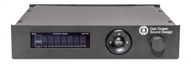 The Dugan Model N Automatic Mixing Controller helps professional audio mixers handle multiple live mics without having to continually ride their individual faders. This signal processor patches into the input insert points of an audio mixing console. Each mic channel is processed in the Dugan controller and returned to the console for mixing.