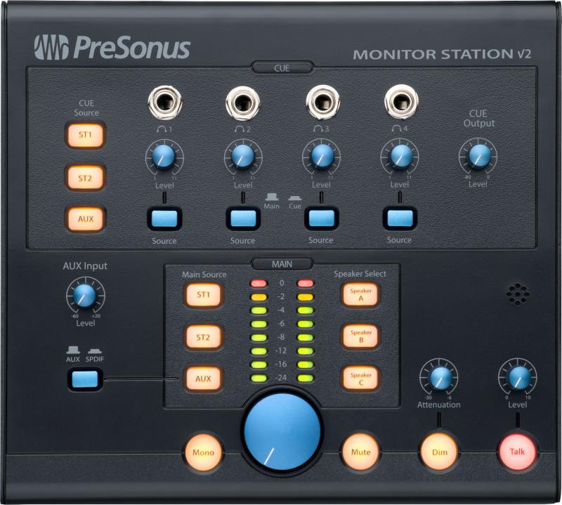 Take control of your monitor system. With its ergonomic, intuitive layout; extensive features and I/O; and PreSonus' famed sound quality, Monitor Station V2 provides a versatile, convenient, and affordable solution for managing your studio monitoring system from your desktop. So sashay down to your PreSonus dealer and take control of your monitoring system the way the professionals do!