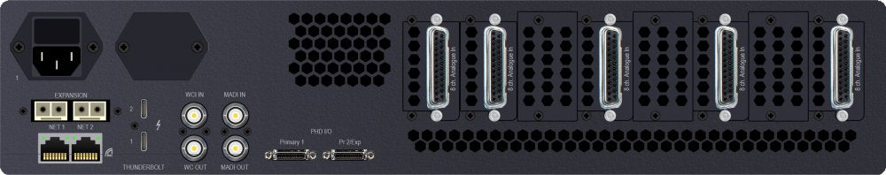 Thunderbolt 3 Option Module (enables up to 256 channels of native low-latency I/O at all sample rates to Pro Tools and other Core Audio DAWs)