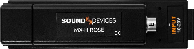 To remove the MX-HIROSE from the MixPre, press in the release tab. On the MixPre-10 II, it is necessary to use a flat blade screwdriver or similar tool. Sound Devices recommends plugging in a right angled Hirose connection, such as this, before attaching the MX-HIROSE to the MixPre. Set MixPre Menu>Power>Battery Type to NiMH.