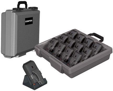 The NBC 9-3-12 Digital Fast Charger is designed to simultaneously charge and store up to twelve COMTEK 216 or 75 series receivers and/or transmitters.