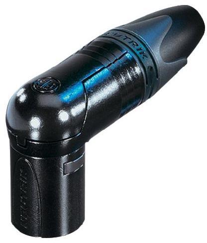3 pole right angle male cable connector, black metal housing, gold contacts