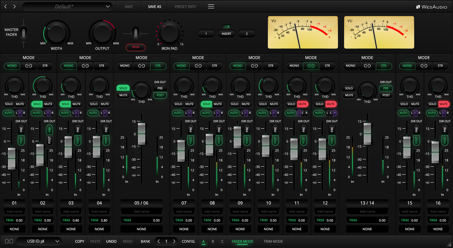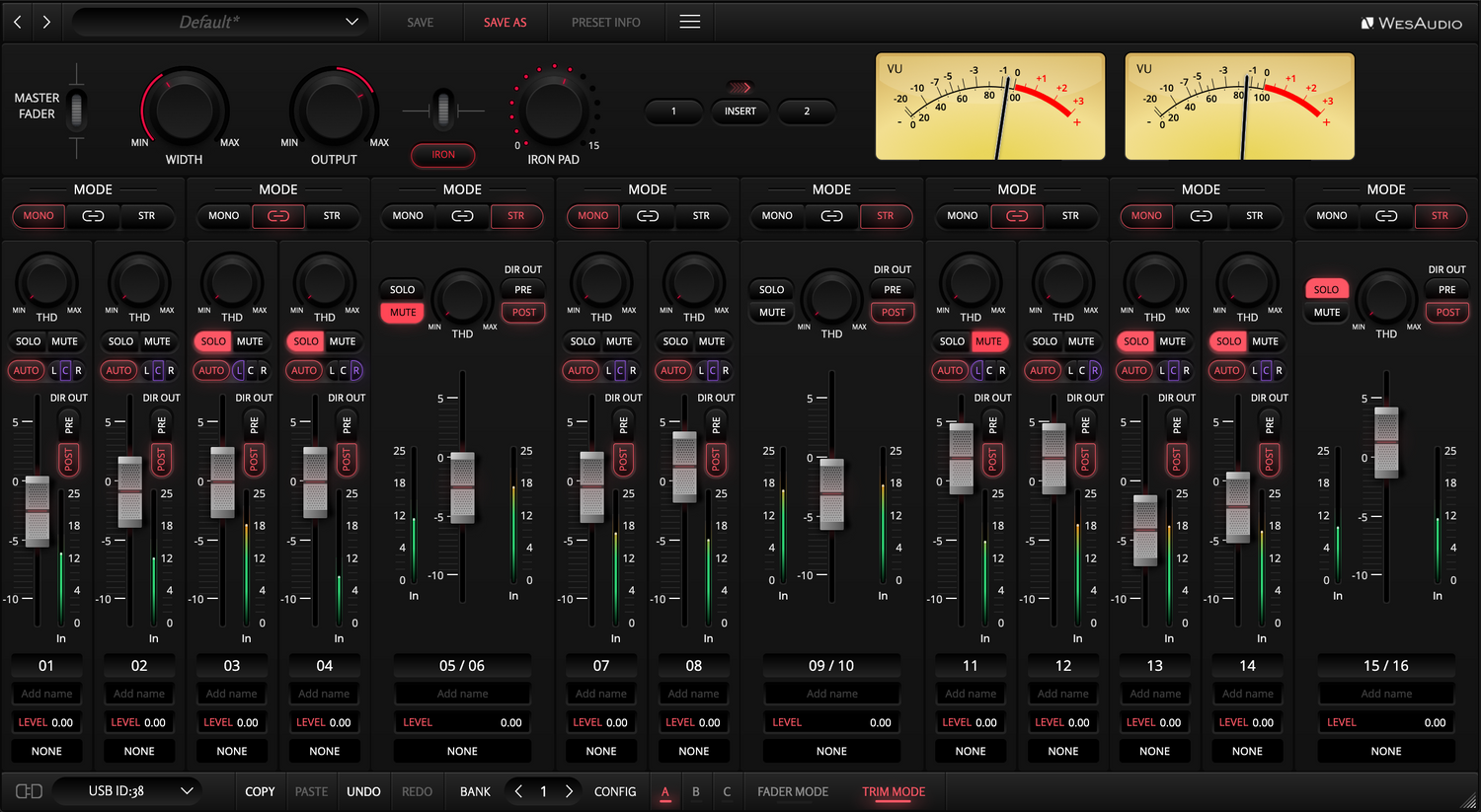 With 16 fully controllable channels and two additional stereo inputs, the ngSumBox supports flexible routing and integration of effects, stems, or submixes. Each channel includes level control, variable harmonic distortion, and LCR panning, along with pre or post-fader direct outputs. The unit features selectable output stages, both electronically and transformer balanced, and includes a stereo WIDTH control for additional mix control. LED input metering and dual VU meters give clear feedback on both individual channels and the final mix. DAW plug-in integration allows seamless control and recall, and support for MC and HUI controllers offers hands-on control for a more intuitive workflow.