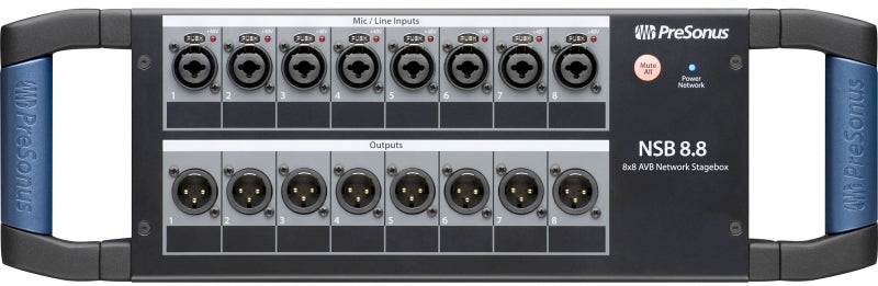 A perfect partner for StudioLive Series III consoles. With AVB networking, all signals flow through one lightweight CAT5e or CAT6 Ethernet cable, eliminating the need for a heavy, expensive copper snake-and the signal degradation that goes with long analog cable runs. You can even remote control the NSB 8.8's inputs, preamps, and phantom power from your networked Series III console or from free PreSonus UC Surface touch-control software.