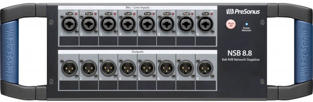 Making connections-lots of them. A stage box is all about analog connectivity, and the NSB 8.8 gives you plenty. You get eight locking combo mic/line inputs equipped with our famous remote-controlled, Class A solid-state XMAX preamps, including gain compensation for shared input scenarios. All line inputs can be controlled from a StudioLive Series III console and from free PreSonus UC Surface software. All eight outputs employ locking XLR jacks. If that's not enough, a built-in 2-port AVB switch lets you daisy-chain multiple units, giving you enough connections for even the largest shows and installations.
