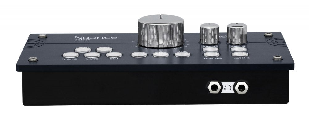 Looking the Part Housed in a robust steel enclosure with a milled aluminum faceplate, the Nuance Select will fit the aesthetic of any studio space and easily incorporate into your workflow, with an ‘everything you need and nothing that you don't' approach to the feature set. Backlit monitor selection and control switches are complemented by oversized chrome knobs on the headphone and master level controls.