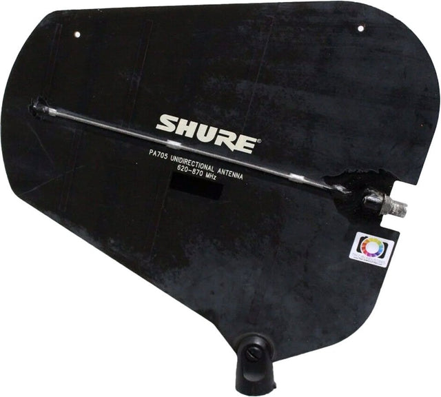 The Shure PA705 is a unidirectional remote-mountable antenna supporting the PSM 600 and 700 series wireless transmitters. This antenna provides line-of-sight coverage to receivers when the transmitters are obstructed and provides additional gain and range due to it's cardioid projection pattern.