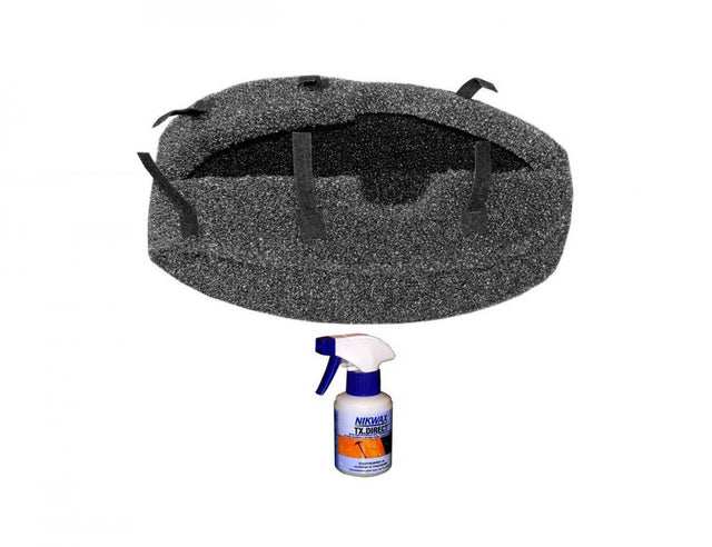 By the principle of the Kelly, each drop of rain breaks silently in the large cells of the foam, then slides along the inner fabric itself waterproofed with Nikwak spray . The large size of the cells also allows water to flow naturally out of the foam (limited sponge effect).