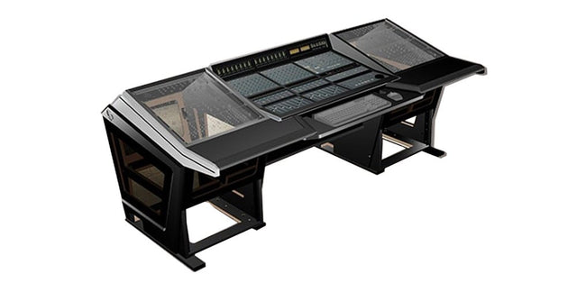 This SSL Matrix Mixer Conversion is designed with your comfort in mind, as well as your workflow. It has a recessed top shelf so that the QWERTY keyboard is at the same height as the leading edge of the mixing Console. The mixing engineer doesn't have to raise his/her hands to go from the keyboard to the mixer and back. It has the most rack in the industry at 48ru. And, as with all of our products, a little or a lot of customization is possible.