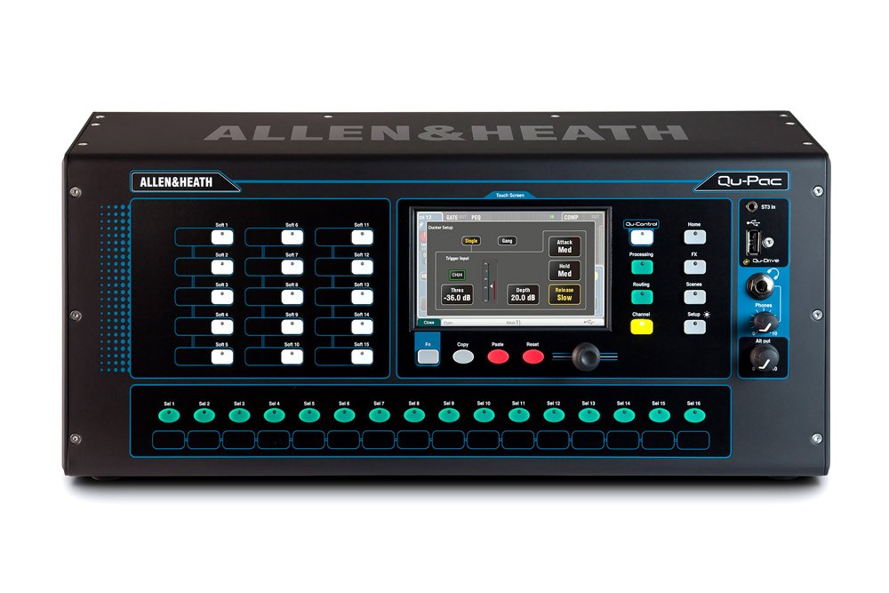 Touch Control Qu-Pac's 5 inch, 800 x 480, sixteen million colour Touchscreen and its dedicated data encoder form the heart of the Qu interface, providing super-fast, easy access to all settings. The user-friendly interface has been designed with clarity in mind. Dedicated keys and screen tabs quickly guide you to meter and RTA views, FX racks, channel processing, USB audio control, scenes, setup menus and much more.