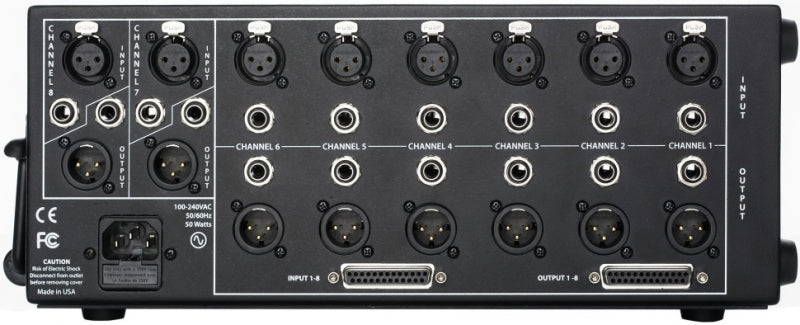 Connect Like Never Before With a plethora of connections available, the R6 backpanel is practically a patchbay on its own. The R6 features 8 channels of balanced I/O options including DB-25, XLR and TRS that may be used interchangeably. This versatility is especially handy when you are taking the R6 with you to another environment where you are unsure of the cables available, or if you need to convert DB-25, XLR or TRS connections to another format using the THRU functionality on channels 7-8.