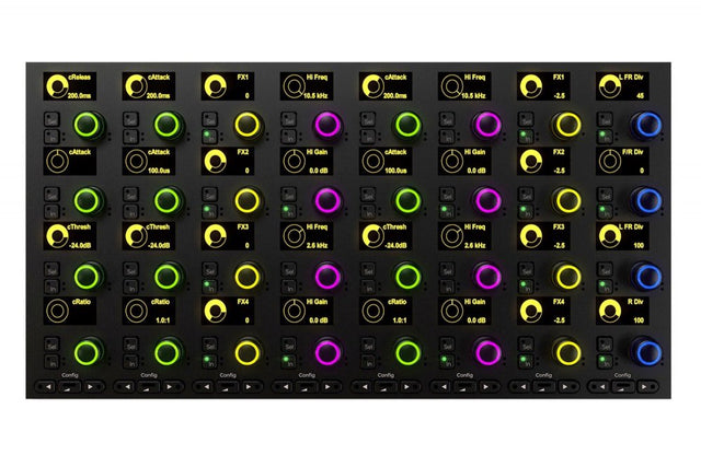 Designed to fit Avid's S4 series consoles, the Control Knob Module (CKM) provides visual feedback and hands-on adjustment of channel functions like plugins, EQ, dynamics, and pan. The CKM module is one of four optional modules you can add to your S4 base configuration. You can add two CKMs to your S4 for a total of 64 additional top-lit knobs, providing at-a-glance confirmation during process heavy mixes.