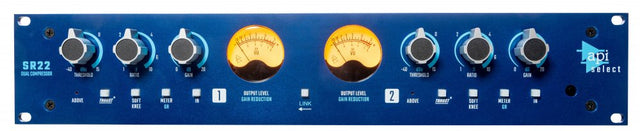 The SR22 Dual Channel Compressor features two channels of API's patented award-winning VCE compressor circuit in a rackmount unit with internal power supply. This same compressor circuit was originally designed into the legendary ATI Paragon analog live mixing console. Each channel includes the patented THRUST circuit, which protects the sensitive high frequency content of the audio signal, even under the most vigorous of compression ratios. The perfect companion to the new SR24 Dual Channel EQ, the SR22 provides comprehensive, easy-to-use control along with classic analog VU meters for monitoring output and gain reduction. The two channels can also be linked for use as a stereo compressor with true RMS power summing of the left and right signals.